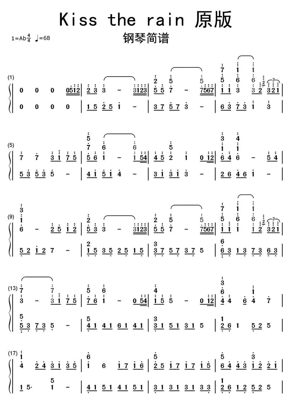 钢琴流行歌曲简谱分享16之kiss the rain #钢琴简谱# #钢琴弹奏