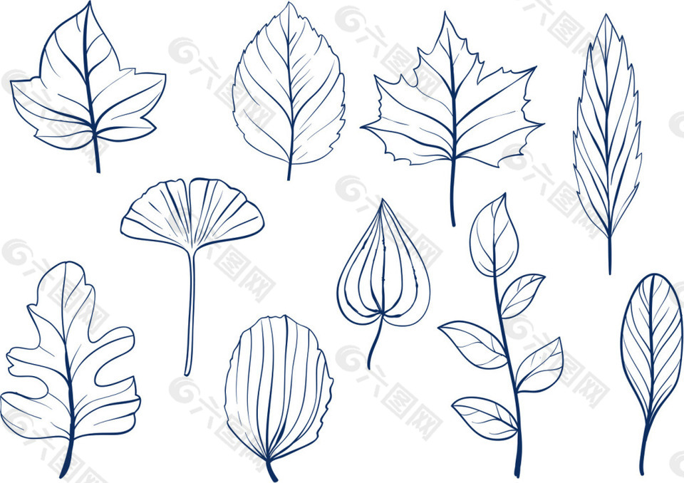 手画的树枝上有树叶和花朵.乡土涂鸦矢量分枝装饰隔离