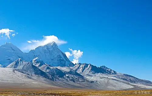 圣洁雪山与蓝天白云共舞