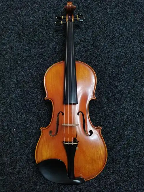 漂亮的新小提琴在黑暗的桌子上.弦乐器准备工作.黑暗的背景.
