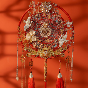 中式婚礼明制婚服新娘遮面手捧花汉服团扇秀禾服出嫁遮面喜扇成品2166