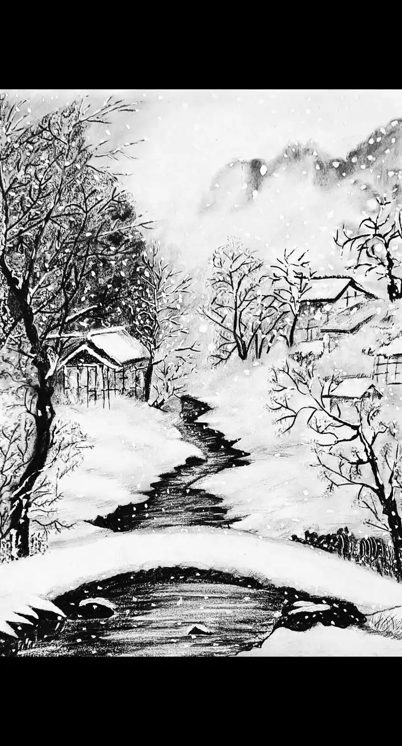 一场雪下不尽冬天的冷漠,朝如青丝暮成雪#写意山水画 #铅笔画