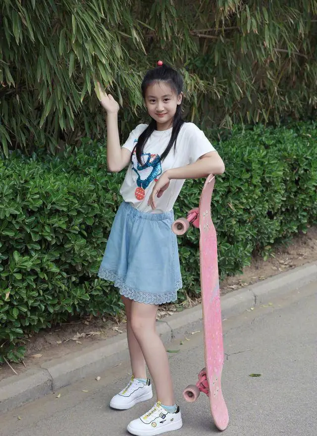 12岁森碟也长大了!t恤搭短裙变身滑板少女,真是肤白貌美大长腿