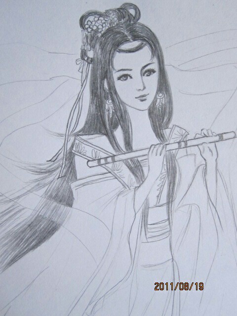 手绘古装人物铅笔画