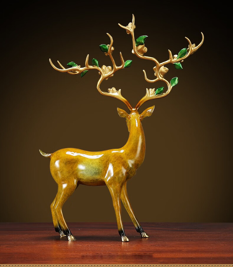 黄铜鹿鹿发财站鹿摆件家居客厅招财北欧办公室桌工艺品创意梅花鹿黄铜