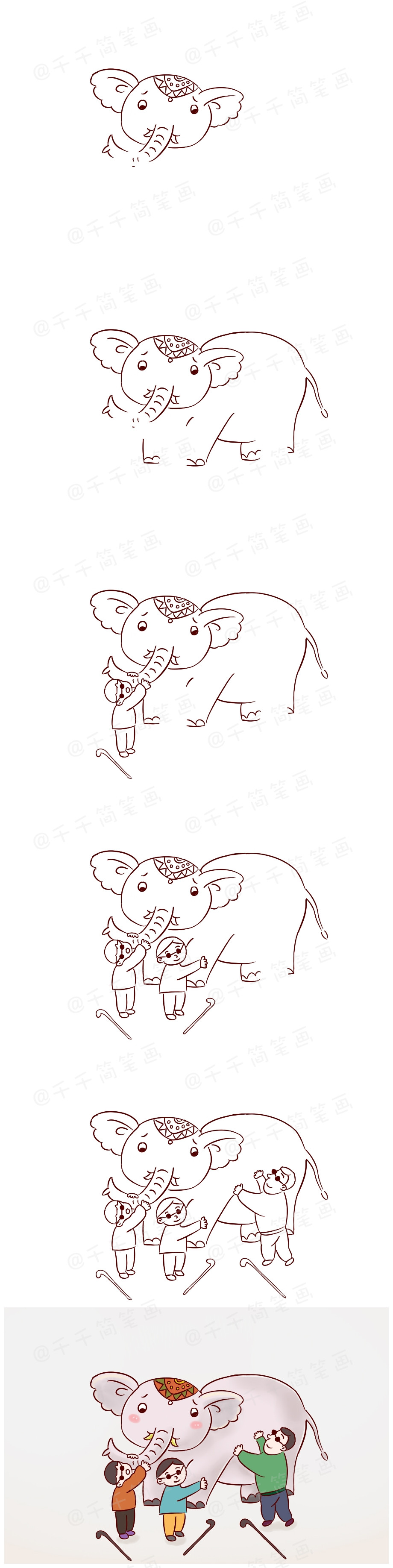 盲人摸象,谢谢喜欢.#画画 #简笔画 #少儿美育 - 抖音