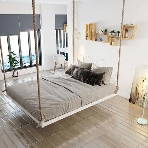 秋千网红公主吊床奢华型室内民宿旅馆家用卧室双人吊绳悬挂大床