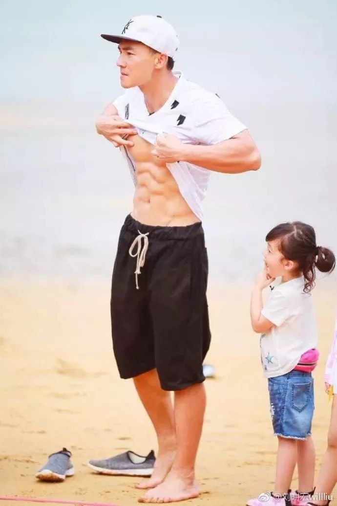 我觉得男明星多去搞搞腹肌,搞搞二头肌还是蛮好的,搞得强壮点,更有