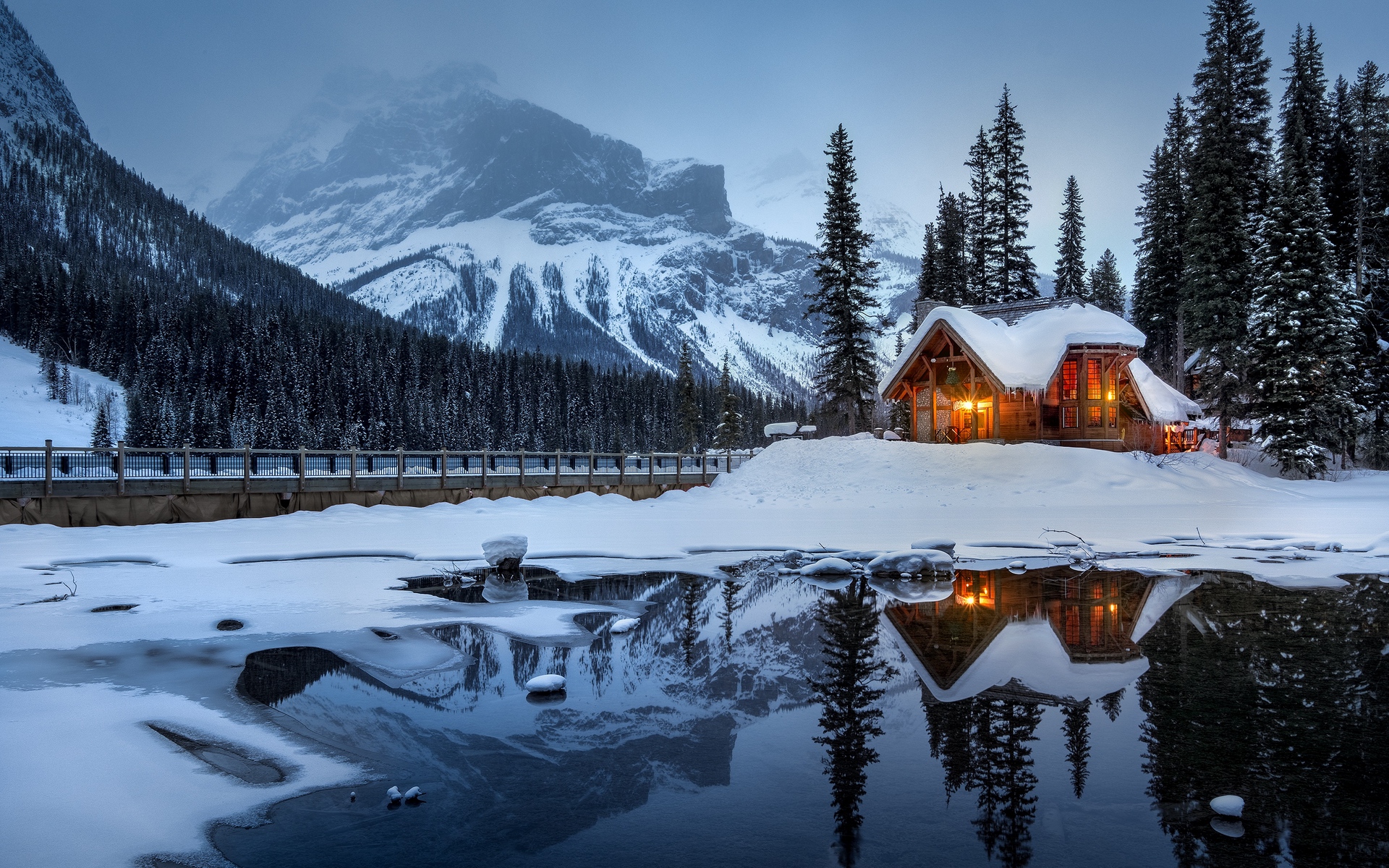 湖景小屋自然风光壁纸图片