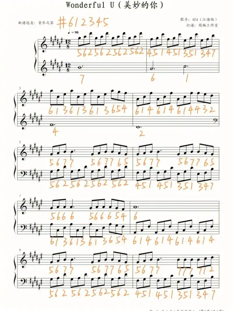 《wonderful u》美妙的你钢琴简谱|||有想要的曲谱 - 抖音