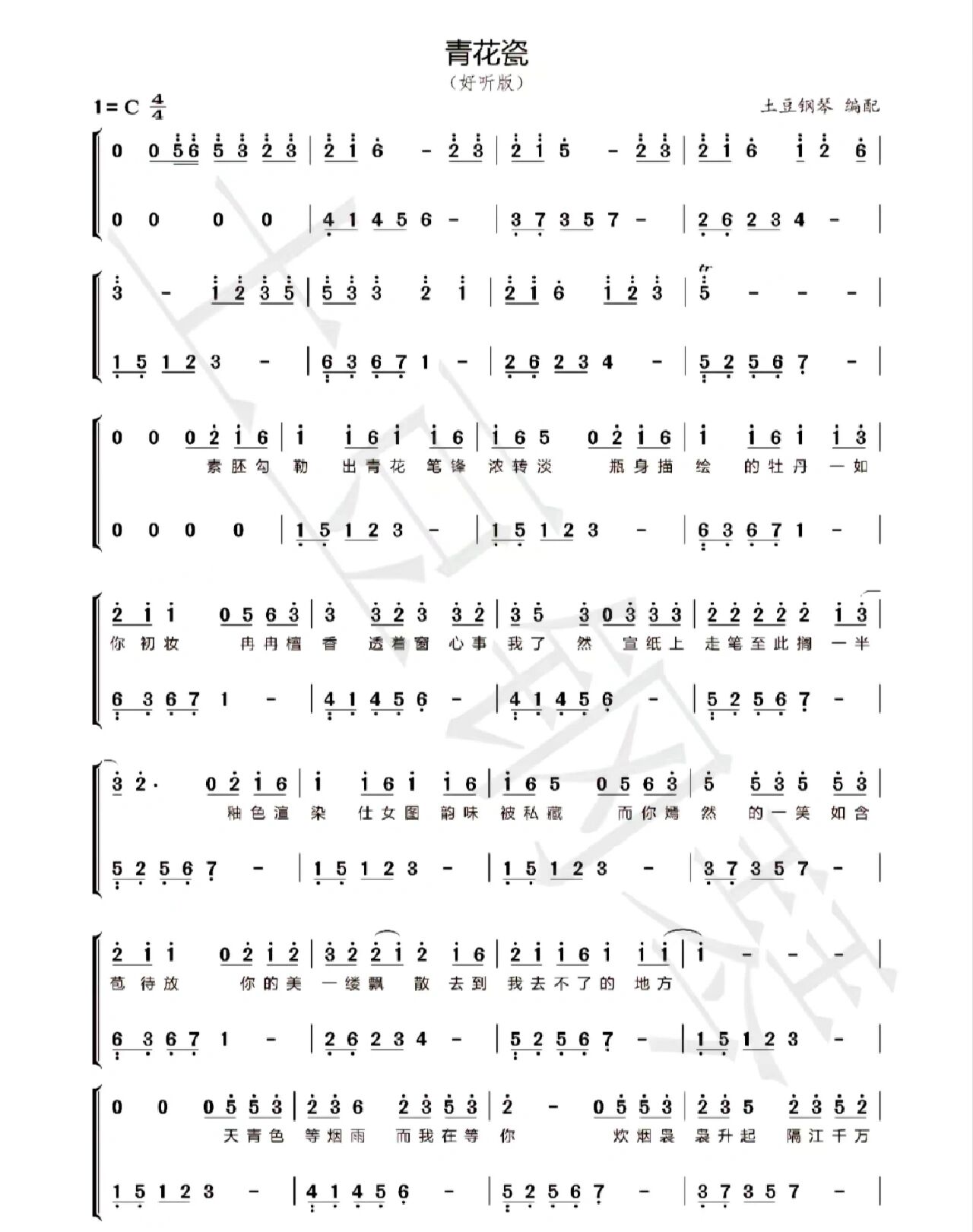 钢琴简谱 #青花瓷 《青花瓷》钢琴简谱 - 抖音