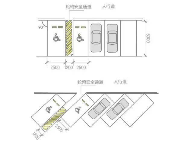无障碍机动车停车位尺寸示意图(1)无障碍机动车停车位尺寸示意图(2)