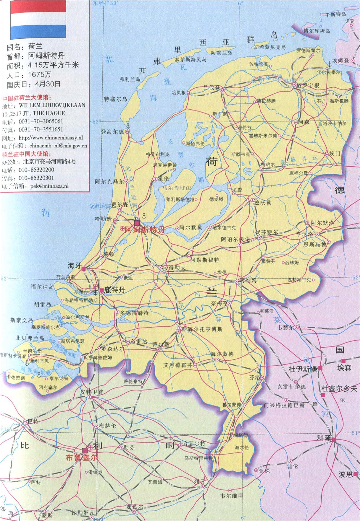 🇳🇱荷兰地图 荷兰王国,英文名称:the kingdom of netherlands,简