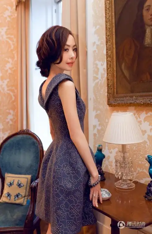 高圆圆蓝色抹胸裙典雅高贵女人味十足