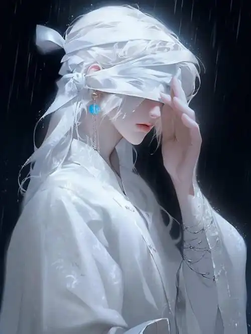 古风丝带遮眼白发男生头像 动漫唯美氛围感仙侠风纱布蒙眼男头