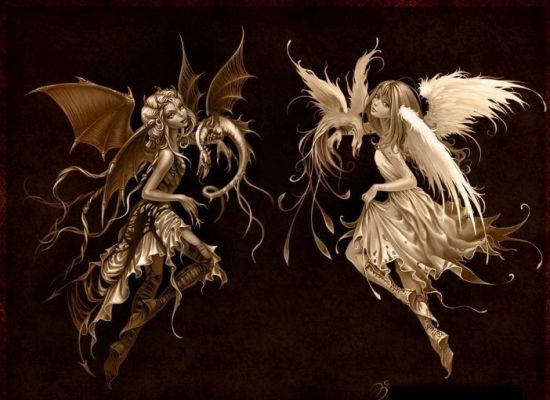 求一个天使与一个恶魔在一起的图片
