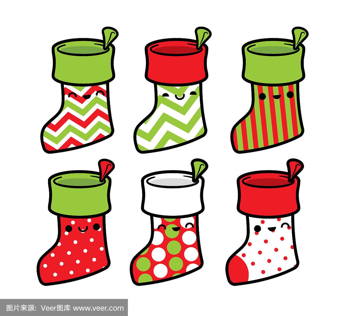 完整的圣诞袜,向量,在白色背景上的完整的圣诞袜卡通