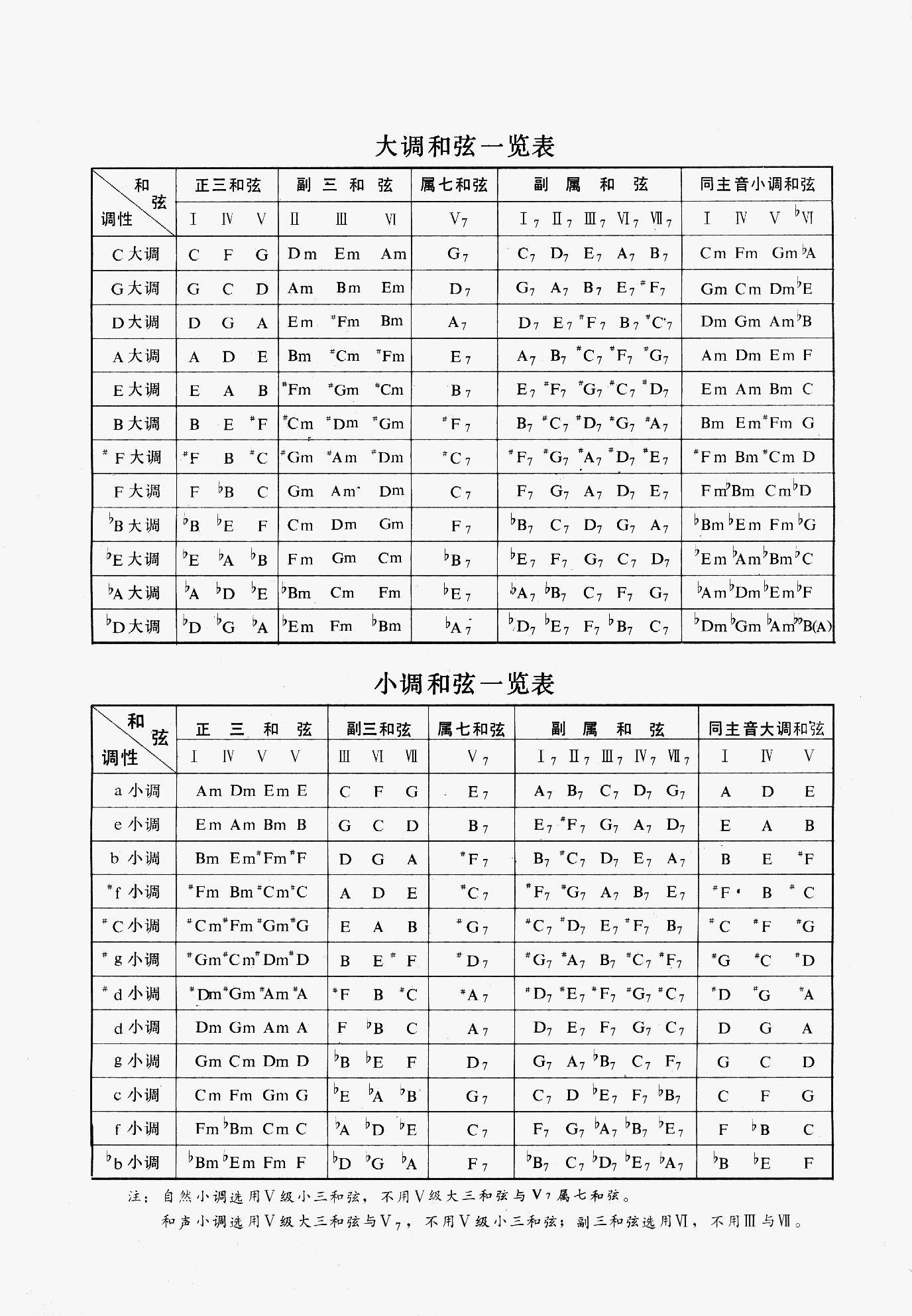 电子琴常用和弦列表
