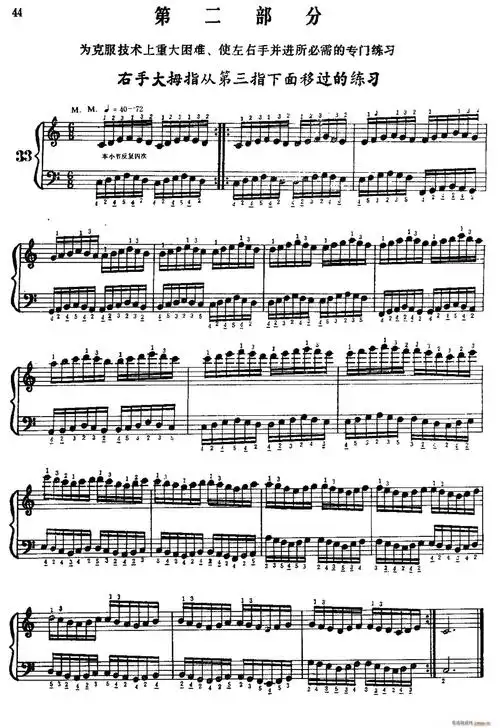 手风琴手指练习第二部分右手大拇指从第三指下面移过的练习
