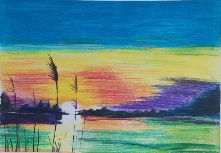 彩铅 水天一色风景绘画过程