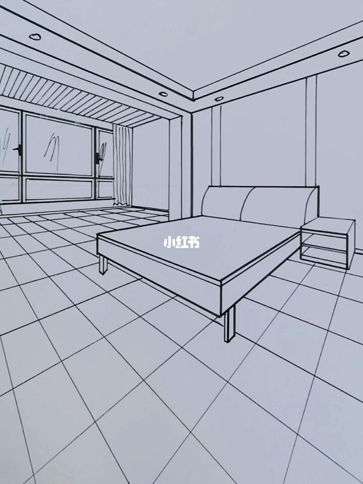 两点透视卧室空间怎么画#手绘设计 #室内设计 #空间设计