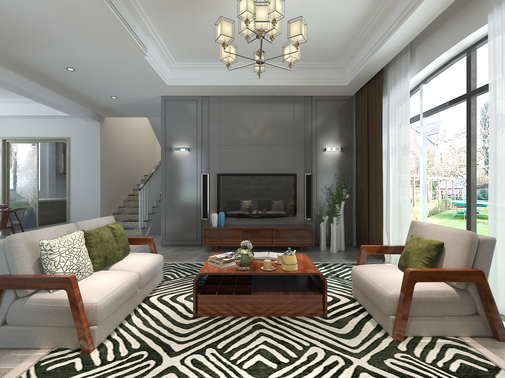 简约风格小别墅客厅整体装修布局图_装信通网效果图