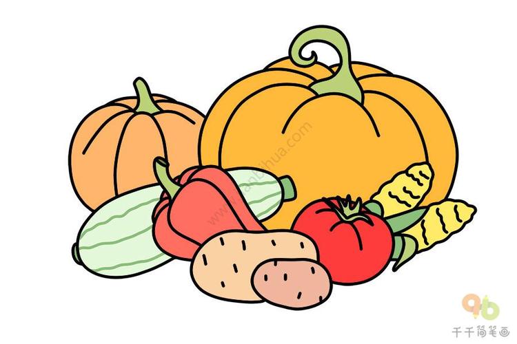 秋天丰收的果实/蔬菜简笔画.教你简单画秋天的蔬菜简笔画 #蔬 - 抖音
