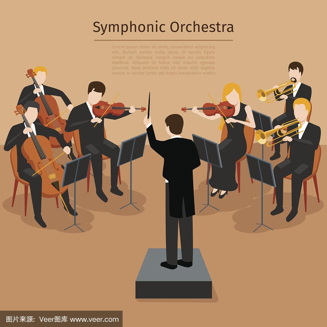 交响乐矢量卡通风乐队