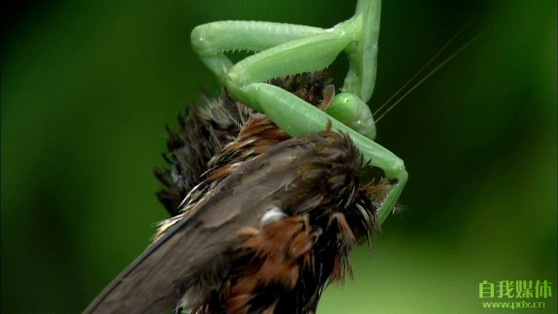 非洲绿巨螳螂手喂蛐蛐散养在阳台上