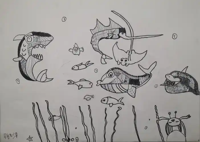 线描画|黑白线描|儿童线描《海底世界》 适合6~8岁左右儿童,两课时