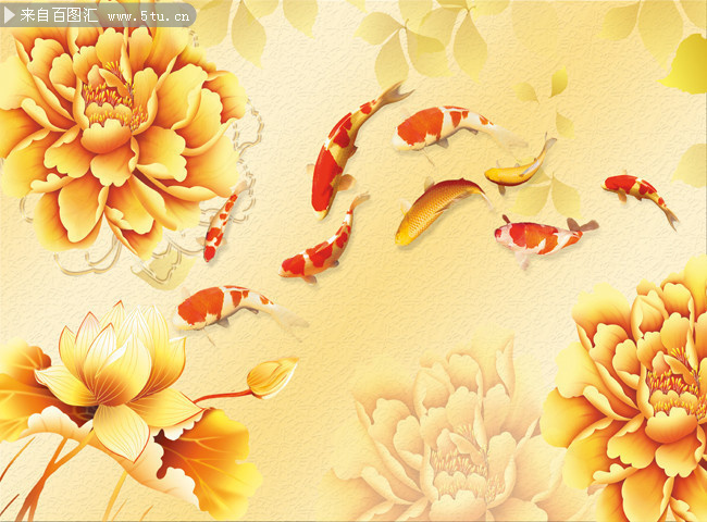 金色荷花背景墙设计素材