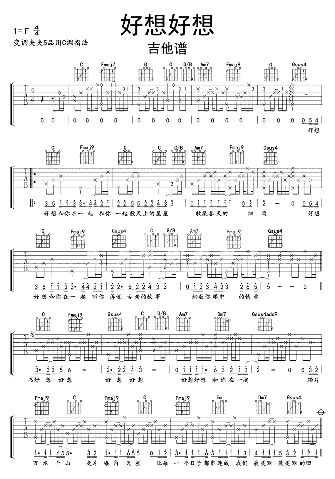 好想好想吉他谱 古巨基 好想好想好想好想好想好想和你在一起2