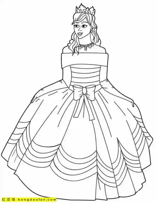 11张免费连衣裙长裙公主裙卡通涂色简笔画-红豆饭小学生简笔画大全