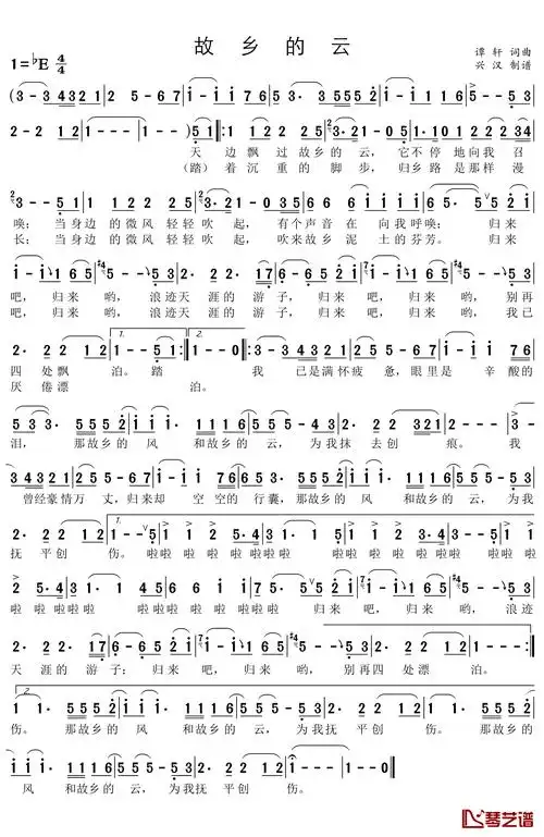 歌曲故乡的云的简谱歌谱下载