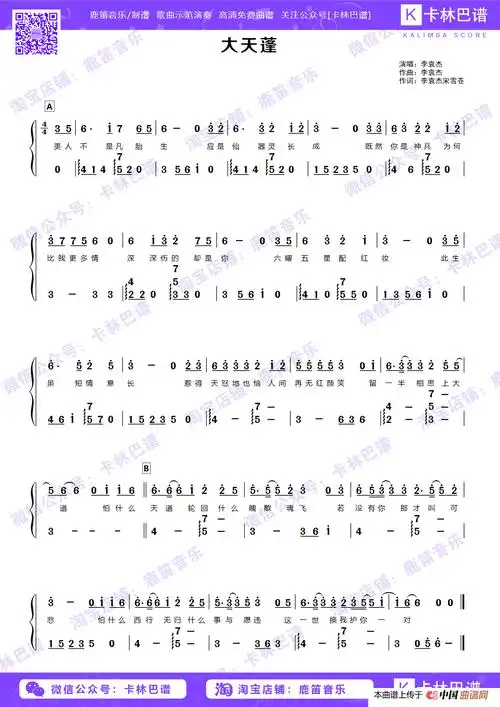大天蓬(卡林巴拇指琴简谱)(1)_原文件名:大天蓬-简谱.png