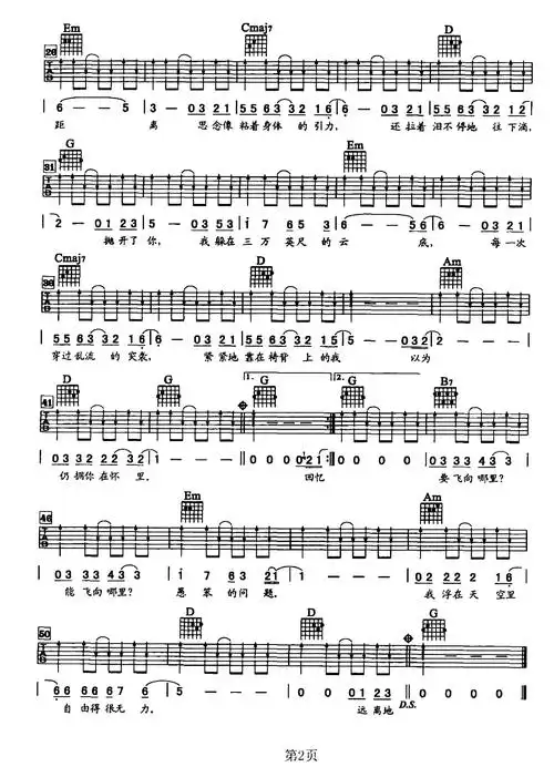 三万英尺吉他谱-迪克牛仔-g调原版吉他六线谱