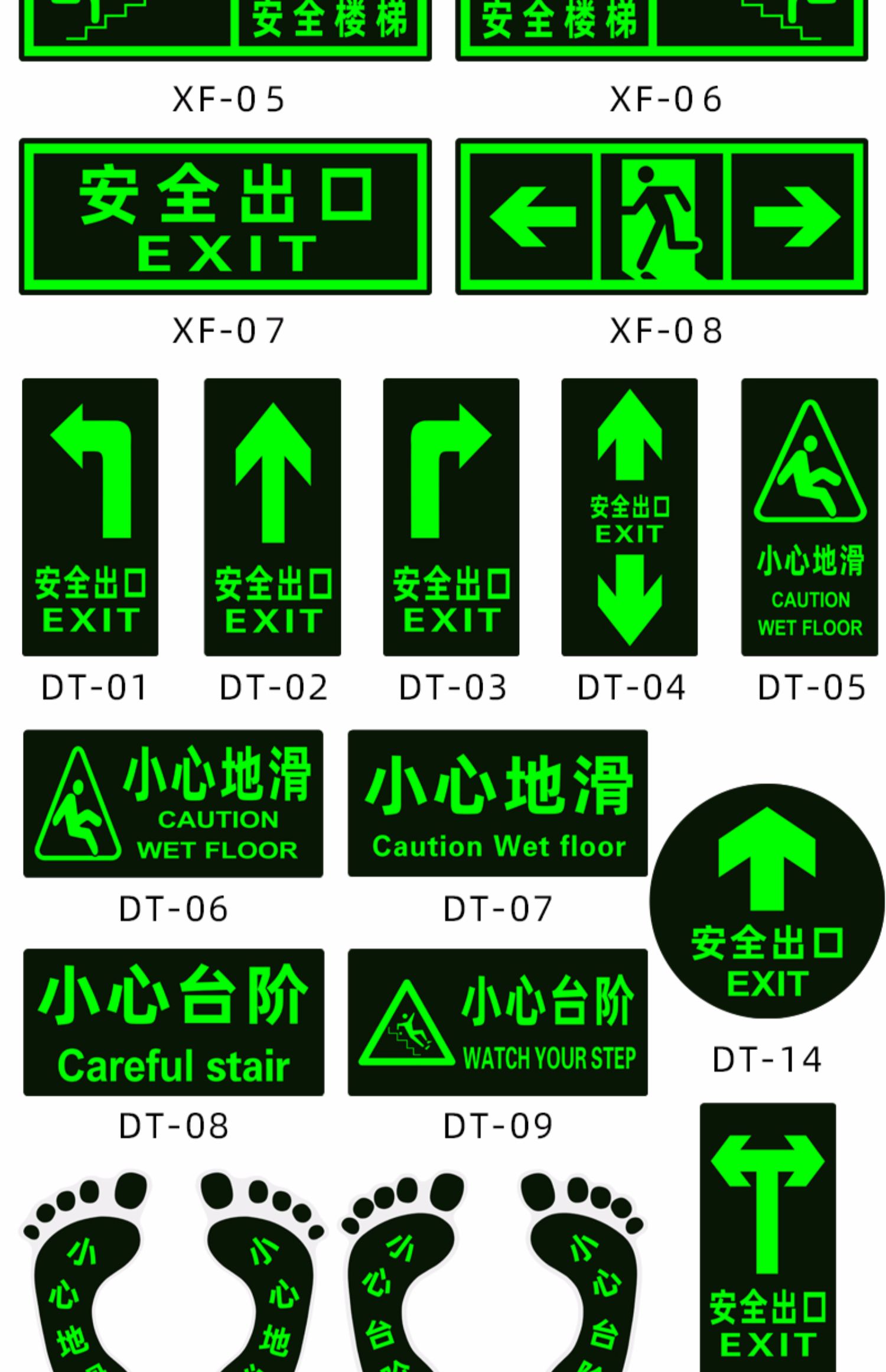 安全出口指示牌pvc夜光地贴小心台阶洗手间消防疏散通道箭头标识