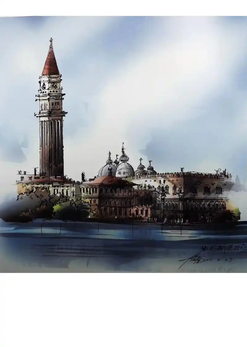 钢笔淡彩风景