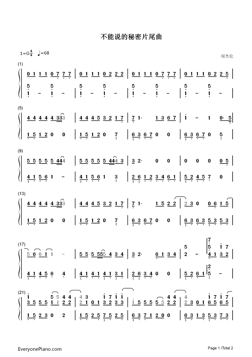 不能说的秘密简谱周杰伦不能说的秘密简谱