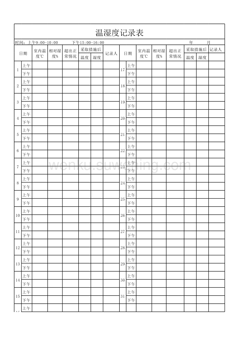 温湿度记录表