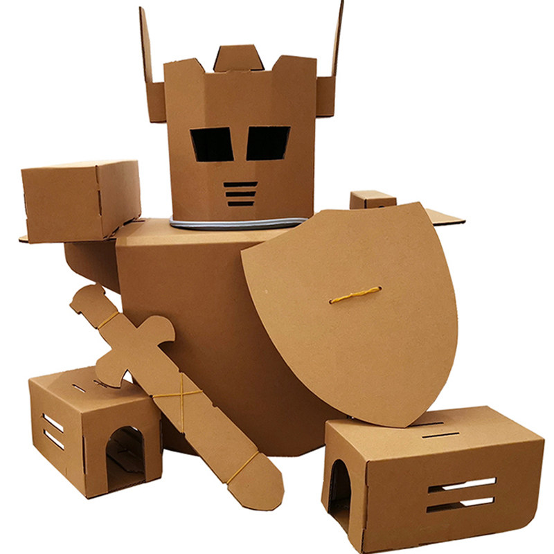 纸箱机器人模型儿童玩具手工diy制作涂色盔甲纸盒板皮可穿戴铠甲