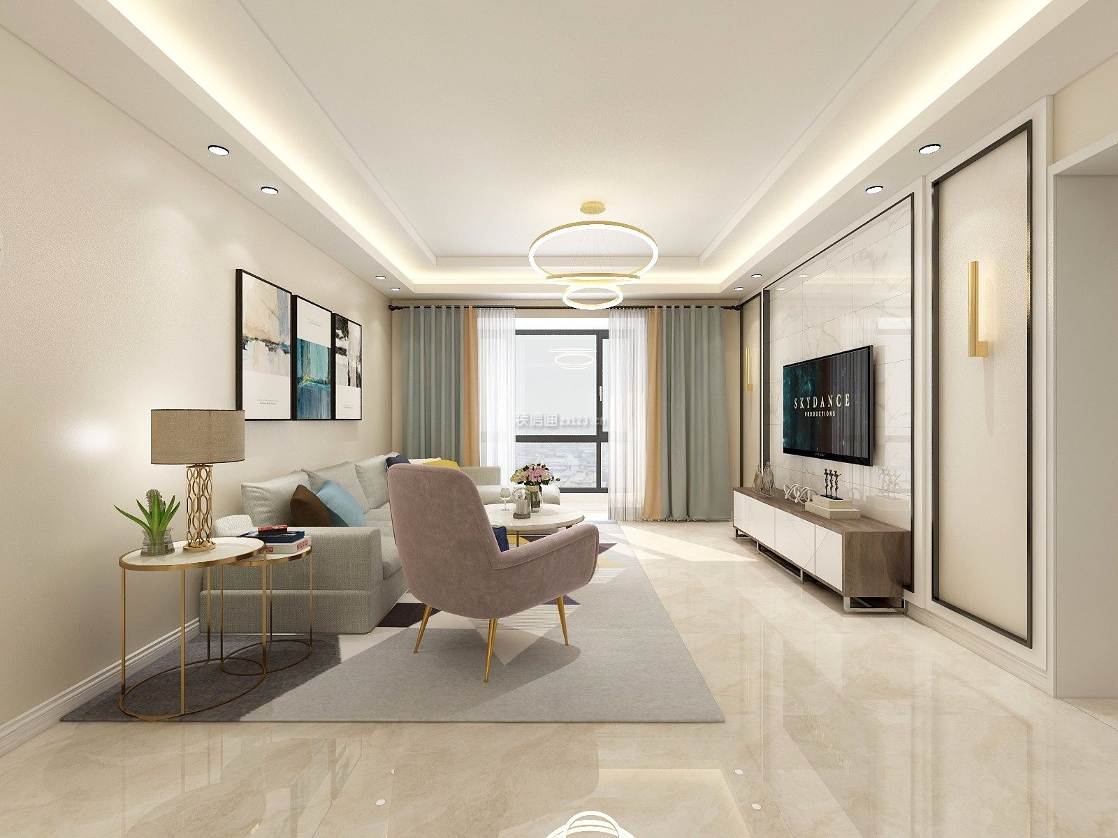100平米现代简约风格客厅二级吊顶装修效果图