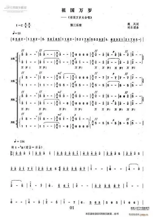 祖国万岁高清版合唱简谱1