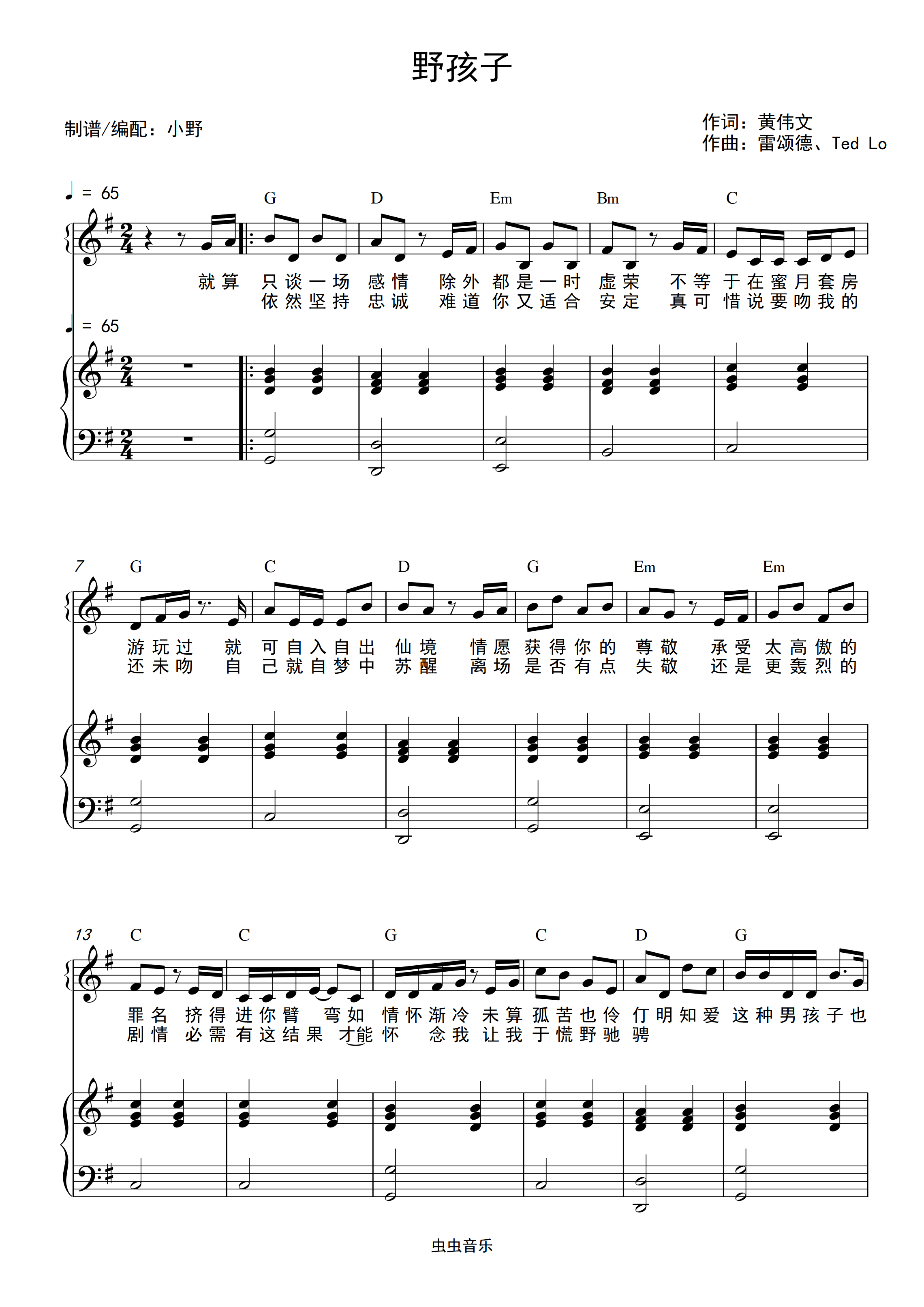 关键词(和弦弹唱版)钢琴谱-c调-虫虫钢琴