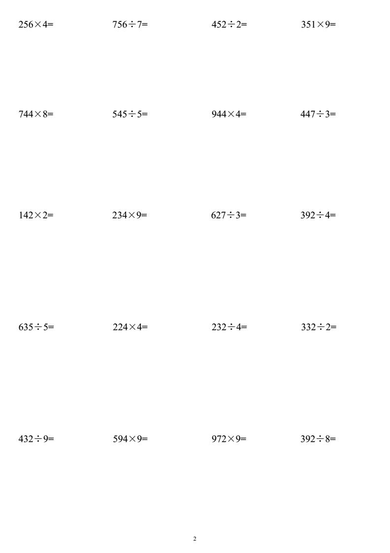 三年级除法用竖式计算练习题pdf3页