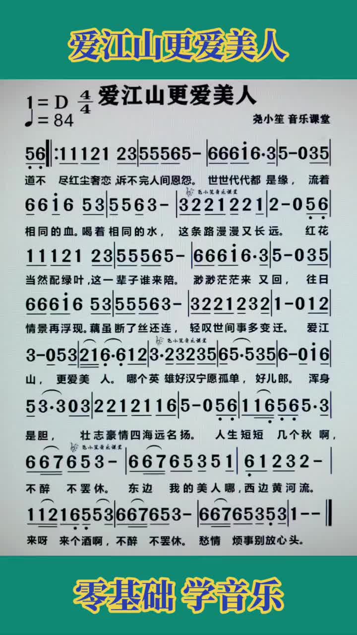 爱江山更爱美人简谱唱谱歌曲音乐分享视唱唱歌真人真唱经典老歌音