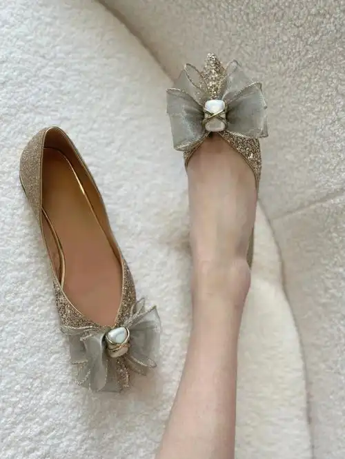 丝绒蝴蝶结 优雅漆皮平底鞋