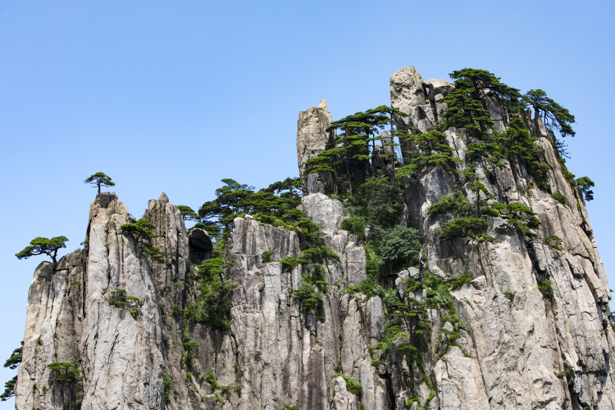 镜头下的晴日黄山奇松怪石