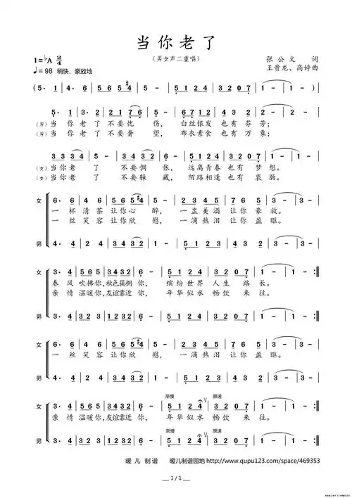 简谱:《当你老了》 《当你老了》是赵照演唱的歌曲,歌词改编自爱尔兰