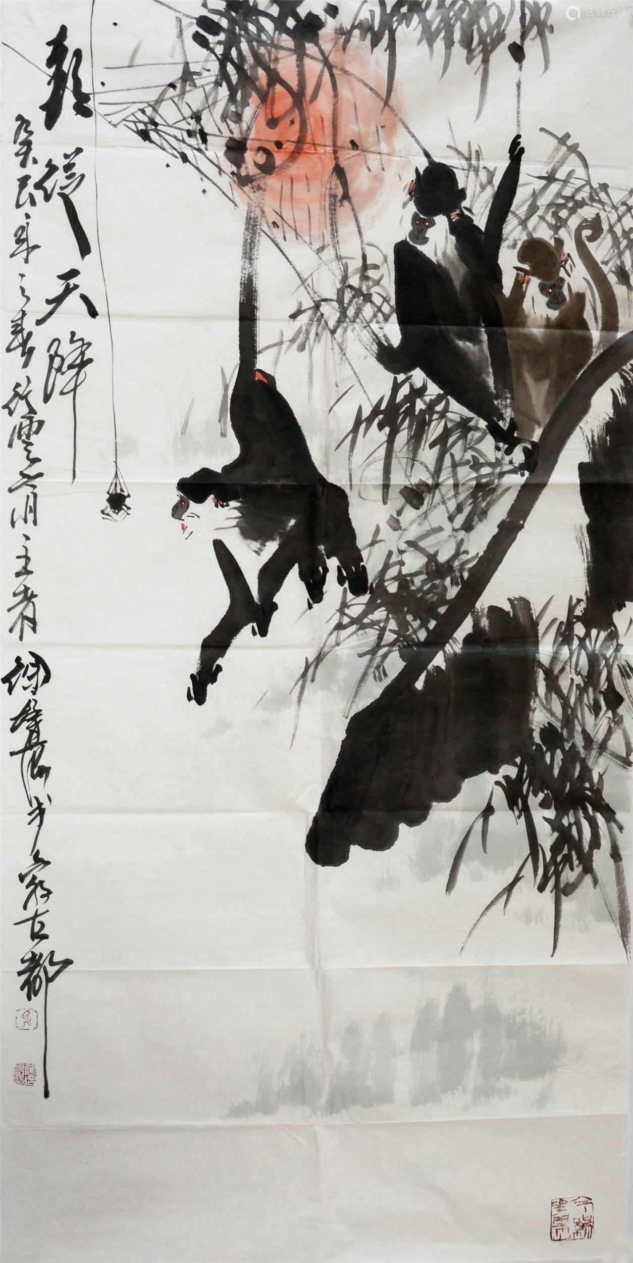 徐培晨字画三尺竖幅手绘精品名人书画写意动物猴名家国画作品收藏纯